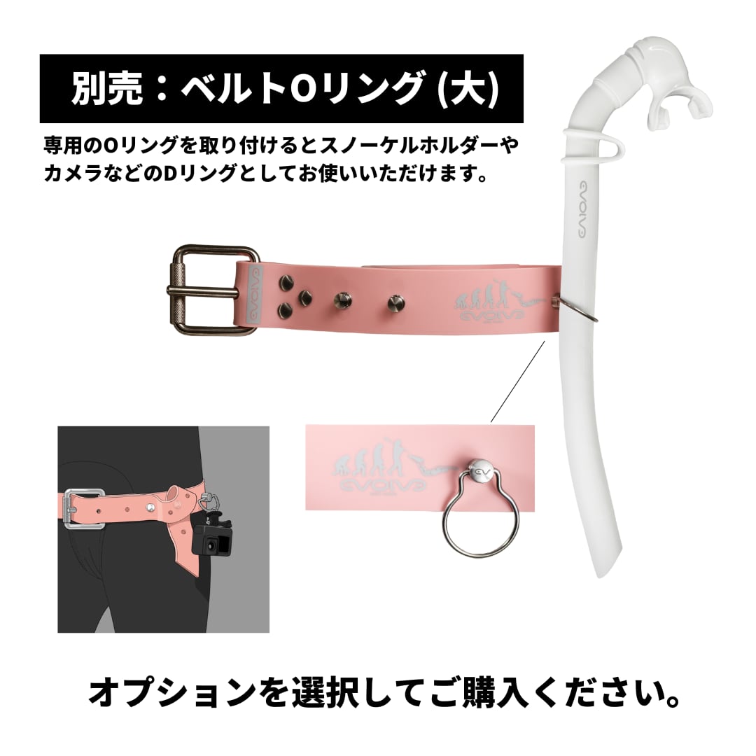 エボルブシリコンウェイトベルト用のホールドリングが取り付け可能です。ベルトと組み合わせるとスノーケルやカメラ、ラニヤードなどの器材がホールドできるようになります。