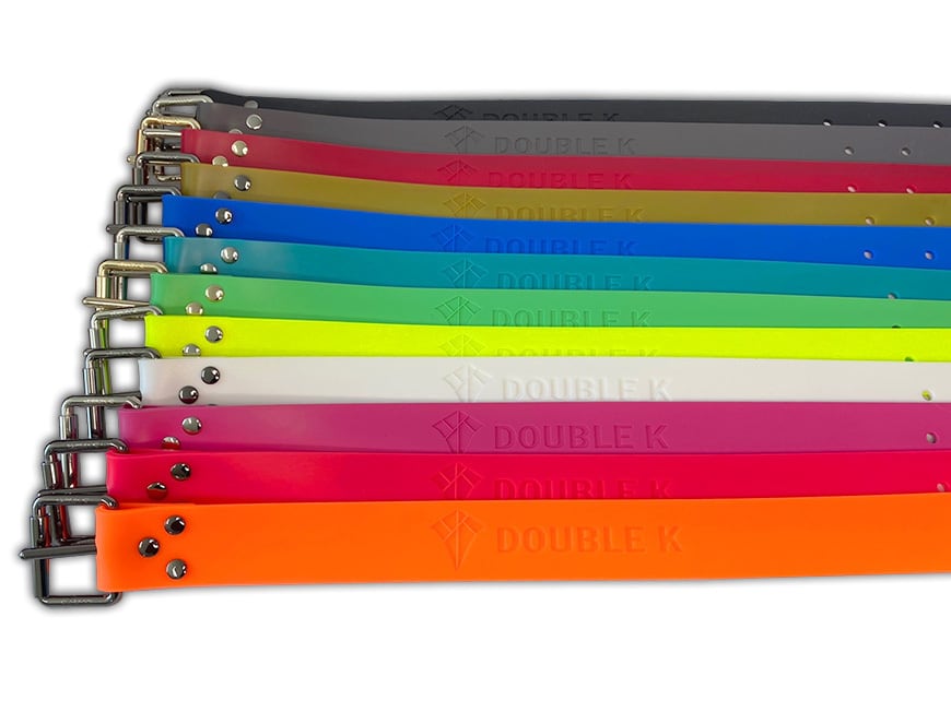 DoubleKのベルトはカラフルで可愛く、カラー数は業界随一。フリーダイビングでは大きく呼吸を吸い込むため柔軟性のあるベルトを装着することでとても楽にフリーダイビングができます。そして腰位置でズレないようにラバーやシリコン製のベルトが必須となります。バックルカラーがゴールドで全12色からお選びいただけます。