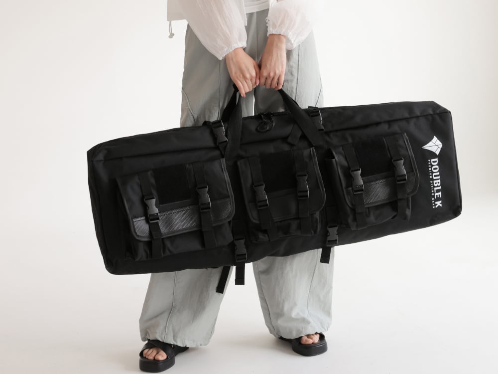 ダブルKのロングフィンバッグの中でも旅行や飛行機移動などにオススメな大容量バッグ。ロングフィンが2枚収納でき、ポケットも多くダイビング器材はこれ一つでOK。2人分の器材運びにもオススメ。しっかりと保護クッション搭載で安心して移動ができます。